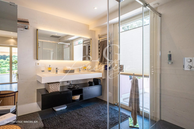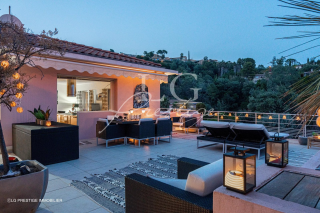 Villa sur le toit vue Mer avec immense terrasse Votre agence LG PRESTIGE IMMOBILIER à Mandelieu-La Napoule a le plaisir de vous présenter en exclusivité cette somptueuse villa sur le toit d’environ 100 m², située au sein d’une résidence de standing sécurisée avec piscine, à 1 minute à pied des plages. Véritable bien d’exception, cet appartement est entouré d’une splendide terrasse de 170 m² offrant une vue dégagée sur la mer et le massif de l’Estérel. La terrasse, véritable prolongement de l’espace de vie, permet d’aménager plusieurs espaces avec de nombreux transats, salons de jardin, coin repas et espaces détente, le tout dans un cadre privilégié. L'appartement, parfaitement agencé, se compose d’une élégante entrée, d’un vaste séjour baigné de lumière avec cuisine ouverte, de trois chambres avec rangements intégrés, de deux salles de douche, ainsi que d'un toilette indépendant. À proximité immédiate de l’appartement, vous trouverez le port de la Figueirette, plusieurs plages privées ainsi que des restaurants offrant un cadre idyllique pour profiter pleinement de vos vacances dans un véritable havre de paix. Autre atout rare : la configuration de l’appartement permet un accès direct en voiture grâce à une entrée indépendante, offrant un confort de vie optimal.