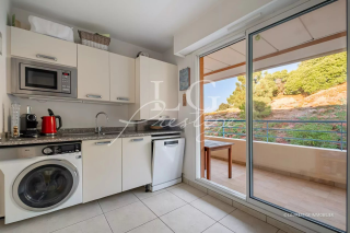 DOMAINE DU GRAND DUC L’agence LG PRESTIGE IMMOBILIER vous propose ce bel appartement de 3 pièces traversant offrant une vue panoramique sur la mer et l’Estérel. L’appartement se compose d’une entrée, d’un séjour lumineux ouvert sur une terrasse plein soleil, d’une cuisine indépendante avec balcon, d’une chambre, d’une salle de douche avec toilettes, ainsi que d’une suite parentale face à la mer avec salle de bains attenante. Les prestations incluent la climatisation réversible, les volets électriques, et l’accès à une résidence sécurisée avec piscine et espaces verts soignés. Un grand garage équipé d’une borne électrique, un parking privatif et une cave complètent cet ensemble. Un cadre de vie rare et privilégié, alliant calme, confort et sécurité 24h/24.