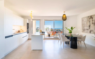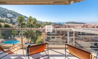 A Vendre Dernier Etage - 4 pièces Rénové - Piscine - Vue Mer - Nice Mont Boron Dans un immeuble de standing situé dans un quartier résidentiel recherché du Mont-Boron, magnifique appartement de 97 m² en dernier étage, entièrement rénové avec des prestations de qualité. Exposé sud-ouest, il bénéficie d’une vue panoramique exceptionnelle sur la mer, les collines et la ville. Il se compose d’un vaste séjour lumineux ouvrant sur une terrasse orientée vers la mer, d’une cuisine ouverte moderne et équipée, de deux chambres en suite avec leurs salles d’eau privatives, ainsi que d’une troisième chambre disposant de sa salle de douche. L’appartement dispose également de plusieurs terrasses et de 3 toilettes. Une cave saine de 12 m2 ainsi qu’un double garage de 27 m2 en box fermés complètent ce bien rare sur le marché. Résidence accessible PMR et Garage à moto/velo. Excellent diagnostic de performance énergétique : DPE B – GES A. Les honoraires de l'agence sont à la charge du vendeur.