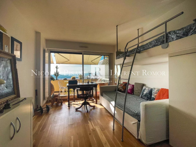 3 PIECES - MONT ALBAN - DERNIER ETAGE - TERRASSE - VUE MER - GARAGE Situé dans le quartier résidentiel du Mont Alban, dans une résidence de grand standing, avec ascenseur, piscine, jardin et terrain de boules, ce 3 pièces d'environ 80 m², en dernier étage, jouit d'une vue panoramique sur le Château de Nice, la mer et la ville. L'appartement, traversant, se compose d'une belle entrée, d'un séjour ouvert sur une belle terrasse exposée à l'Ouest, de deux chambres avec chacune sa salle de douche/ bains et toilettes en-suite, d'une cuisine et de nombreux rangements. Un grand garage ainsi qu'une cave complètent ce bien. Honoraires d'agence à la charge du vendeur.
