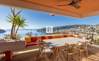 VILLEFRANCHE SUR MER VUE MER PANORAMIQUE PISCINE Exceptionnel, dans une petite résidence avec piscine et gardien, proche des commodités. Appartement d'environ 74 m² entièrement rénové avec des matériaux de qualité. Exposé sud, cet appartement se compose d'une entrée, d'un vaste séjour avec cuisine ouverte, une chambre avec rangement, le tout ouvrant sur une vaste terrasse offrant une vue panoramique sur la mer, le Cap Ferrat, la rade et la vieille ville de Villefranche -Une belle chambre avec vue mer et balcon, salle de bain avec baignoire balnéo, une salle de douche et WC invité. Vendu avec place de parking privative et cave Honoraires d'agence à la charge du vendeur