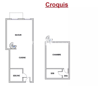 L’appartement offre de beaux volumes avec ses poutres apparentes et le charme de l’ancien d’antan. Il se compose d’un séjour lumineux avec cuisine américaine, d’une chambre et d’une salle de bain.