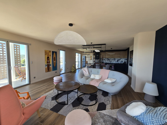 Situé au dernier étage d'une résidence récente et sécurisée, cet appartement développe 106,25 m2 Loi Carrez et bénéficie d'une terrasse plein sud de 25 m2 offrant une vue mer panoramique exceptionnelle.