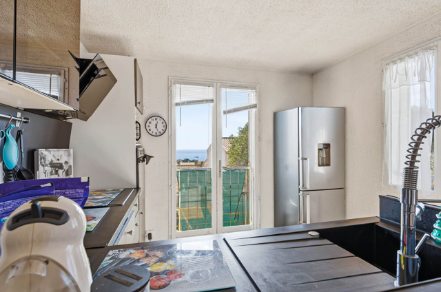 EXCLUSIVITÉ - Appartement haut de villa avec vue mer panoramique, terrasse et jardinet. IMMO FORUM, Agence de la Côte a le plaisir de vous présenter ce superbe appartement, idéalement situé au premier et dernier étage d'une petite copropriété intimiste de seulement deux lots, sans aucune charge. Baigné de lumière et bénéficiant d'une très belle vue mer, ce bien offre un cadre de vie privilégié, entre confort et sérénité. Il se compose d'une entrée ouvrant sur un agréable espace de vie comprenant un salon prolongé par une terrasse avec vue mer, une salle à manger conviviale et une cuisine ouverte. L'espace nuit dessert deux chambres, une salle de bain ainsi qu'un WC indépendant. A l'extérieur, vous profiterez d'un espace extérieur privatif pour vos moments de détente face à la mer, véritable atout rare sur le secteur. Situé dans un environnement calme et recherché, ce bien offre le parfait compromis entre appartement et maison, avec les avantages d'une petite copropriété sans charges. Le bien est en cours de location jusqu'en fin 2026 mais un congé pour vente sera délivré . Une opportunité rare à découvrir sans tarder. Pour plus d'informations ou organiser une visite, contactez-nous au 04 42 45 09 09.