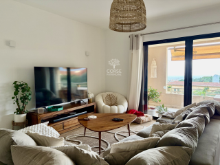 CORSE PATRIMOINE IMMOBILIER a sélectionné au sein d'une résidence calme et prisée, ce superbe appartement avec vue mer, bénéficiant d'une exposition Ouest idéale, offrant une luminosité remarquable et de magnifiques couchers de soleil.