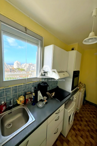 Au centre-ville - Appartement P4 de 67 m ² plus une loggia vitrée sud de 4.50 m ², une terrasse de 31 m ² ouest et une loggia vitrée de 9 m ² côté nord ouest - Au dernier étage avec ascenseur - Comprenant : entrée, cuisine séparée et équipée, séjour, salle de bain, wc, chambre + chambre en enfilade, chambre avec placard - A moderniser - Exposé sud, ouest et nord ouest - Belle vue mer et arrière pays - Proche de toutes les commodités et la plage - Parking privé