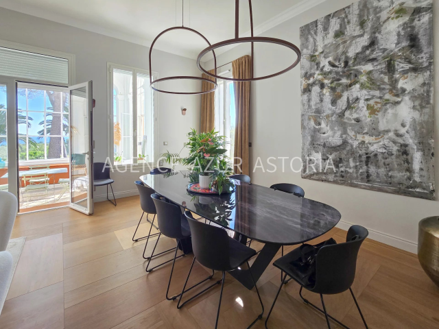 CO EXCLUSIVITE - VENTE D'UN APPARTEMENT D'EXCEPTION VUE MER A SAINT RAPHAEL PROCHE MER ET COMMERCES CO EXCLUSIVITE à Saint-Raphaël – Appartement d’exception 240 m² – Vue mer, jardin privatif, charme de la Belle Époque Dans un ancien palace du XIXᵉ siècle, témoin du passé prestigieux de cette station balnéaire, au cœur d’un parc centenaire à la végétation préservée, ce somptueux appartement/villa incarne le raffinement de la Belle Époque allié au confort contemporain. De vastes volumes, hauts plafonds, matériaux nobles et finitions soignées confèrent à ce lieu un charme unique. Exposé plein sud, il offre une vue mer et un art de vivre chaleureux et élégant. Du massif de l'Estérel aux rives de la mer Méditerranée, un paysage superbe s'offre au regard. Atouts majeurs : 7 pièces en duplex (dont 2 suites de plain pied) second salon avec kitchenette, sale de sport Jardin privatif et clos de 900 m², 3 terrasses, jacuzzi, jardin d’hiver Double garage, stationnements extérieurs, ascenseur privatif Piscine pour seulement 6 résidents À 10 minutes à pied des plages et commerces Un bien rare, entre histoire, nature et élégance, pour amateurs d'exception et de sérénité sur la Côte d’Azur.
