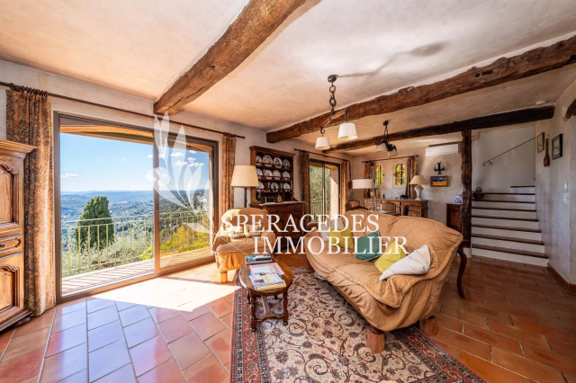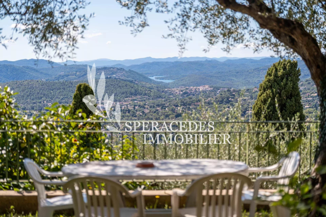 Cabris - Proche du village vue mer et lac Cabris, dans un quartier recherché à pied du village, cette charmante maison traditionnelle d’environ 135 m² séduit par sa vue panoramique exceptionnelle sur la mer, le lac de Saint-Cassien et le massif de l'Esterel. Édifiée sur un terrain d’environ 2 000 m² agrémenté de magnifiques oliviers, elle dispose d’une belle piscine de 10x5 m avec pool-house aménageable. La maison s’organise sur deux niveaux, reliés par un escalier intérieur et un ascenseur. Elle offre un beau séjour avec cheminée et salle à manger donnant sur la terrasse. La cuisine indépendante bénéficie également d’un accès direct à l’extérieur. Un bureau vient compléter l’espace de vie. Côté nuit, trois chambres se partagent une salle de bains. En annexes, la maison dispose d'un grand sous-sol, un atelier, un abri voiture ainsi que plusieurs places de stationnement.