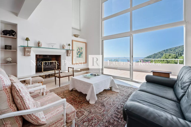 VILLA CONTEMPORAINE - CALME ABSOLU - VUE MER - CO-EXCLUSIVITE Eze bord de mer - Au sein d’un petit domaine privé au calme absolu et sans aucun vis-à-vis, villa contemporaine d’environ 228 m² sur un terrain de 3 771 m² agrémenté d’essences méditerranéennes. Répartie sur trois niveaux, la villa propose de généreux volumes lumineux avec un séjour sublimé par une belle hauteur sous plafond, une salle à manger ouvrant sur une large terrasse couverte et une cuisine semi-ouverte. L’espace nuit se compose de trois chambres, dont une suite parentale, deux salles de bains, ainsi qu’une salle de douche. À l’extérieur, une terrasse couverte de 30 m² ainsi qu’un patio intimiste et abrité offrent des espaces de détente utilisables en toute saison. Un appartement pouvant être indépendant avec un vaste séjour avec cuisine ouverte, une grande chambre, une salle de douche, ainsi qu’une chambre d’enfant. En complément, une piscine chauffée à débordement de forme libre, bordée d’une terrasse avec pool-house. Une grande cave, deux larges zones de stationnement et un garage fermé complètent ce bien d’exception. Honoraires de négociation à la charge du Vendeur.