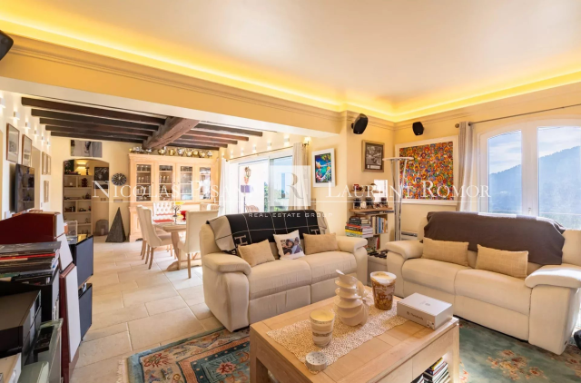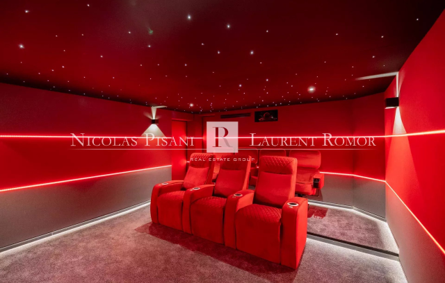 Villa rénovée à proximité de Monaco. Située dans un quartier résidentiel prisé sur les hauteurs de Menton, cette propriété développe son élégance sur un terrain dominant de 1587 m² et bénéficie d’une vue mer dégagée. La maison propose quatre chambres et trois salles de bains, avec une distribution cohérente et fonctionnelle. La cuisine entièrement aménagée et équipée s’intègre naturellement aux espaces de vie, ouverts vers l’extérieur. Les terrasses ensoleillées ont été pensées comme de véritables lieux de réception, avec un aménagement complet autour de la piscine permettant de profiter pleinement des repas en extérieur et du panorama. Une salle de cinéma offre un espace confortable pour les soirées privées. La propriété dispose également d’une cave à vin et d’un jacuzzi, ajoutant un niveau de confort supplémentaire. Six places de stationnement sont disponibles à l’intérieur de la propriété. Alliant le caractère de l’ancien à des prestations actuelles, ce bien constitue une opportunité rare pour profiter pleinement du cadre privilégié de la Côte d’Azur. Frais d'agence à la charge du vendeur