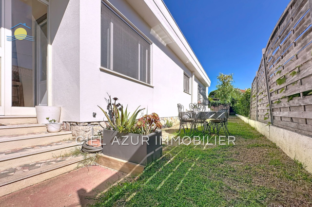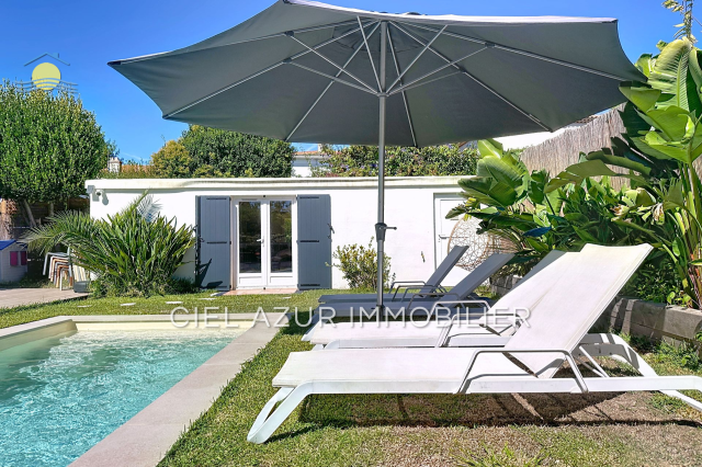 Cette magnifique maison individuelle de plain-pied est située dans le quartier bord de mer de Juan-les-Pins. Cette demeure est idéale pour une famille car elle a une superficie de 100 m² et un spacieux séjour de 37 m² avec cheminée. Celle-ci comprend une cuisine américaine, trois chambres, une salle de bain, un WC et une buanderie. Vous profiterez également d'un grand terrain de 500 m², propice à la détente grâce à sa terrasse, la piscine ainsi que le jardin exposé Est-Ouest. Pour compléter le tout un bungalow se trouve dans le jardin, comprenant un lit et une salle de douche, parfait pour accueillir vos invités. Le secteur Bord de mer de Juan-les-Pins est un véritable havre de paix pour les amoureux du littoral méditerranéen. La région Côte d'Azur offre des plages de sable fin ainsi que de nombreuses activités nautiques. On y trouve des cafés, des restaurants et des boutiques haut de gamme longeant la promenade.
