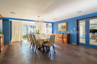 PROPRIETE D'EXCEPTION DOMINANT MONACO Roquebrune-Cap-Martin - À moins de 10 minutes du centre de Monte-Carlo, Cette propriété d’exception à l'abris des regards de près de 800m² dont 590m² habitables qui réinterprète le luxe contemporain avec une élégance rare. Nichée dans un parc paysager d’environ 3870m² au sein d'un domaine privé, ce bien bénéficie d’une intimité totale et d’un panorama hypnotique sur la Méditerranée et les lumières de Monaco. Entièrement réaménagée dans un style Art Déco moderne, la villa se répartie sur deux étages desservis du garage par un ascenseur. Au niveau principal de vie, ouvrant directement sur la terrasse principale avec piscine à débordement et vue panoramique exceptionnelle, un vaste salon avec salle de jeux, une salle à manger avec une table pouvant accueillir jusqu'à 20 convives, une grande cuisine, une salle de sport, une salle de massage / bien être et un hammam. L'étage dévoile 4 suites, toutes orientées plein sud avec terrasse privée, dont une chambre de maître spectaculaire dotée d'un large espace dressing, d’un bureau, d’une salle de bain avec jacuzzi et sauna. Sur le toit, deux vastes solariums et un bureau privé face à la mer. Un appartement indépendant comprenant une chambre et une salle de douche, une cuisine d'été professionnelle idéale pour des grandes réceptions de 22m², un garage de 90m² pouvant accueillir environ six véhicules, un appartement de gardien de 20m² et un grand espace parking à l'arrière de la propriété viennent parfaire ce bien d’exception. Honoraires d'agence à la charge du vendeur.