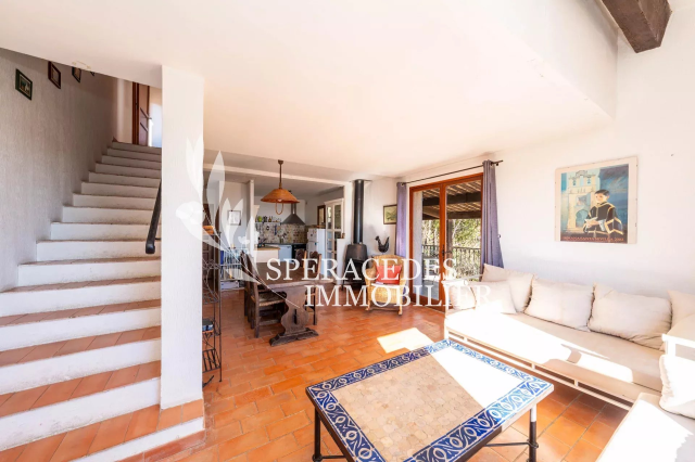 Spéracèdes - Maison de village vue mer et places de parking Spéracèdes, maison de village avec vue panoramique sur la mer, les collines et le village, d'une superficie d’environ 80 m², cette charmante maison bénéficie de vastes terrasses et de deux places de stationnement privatives. Elle se compose, de plain-pied, d’un séjour lumineux avec cuisine ouverte donnant sur une grande terrasse en partie couverte. À l’étage, une chambre s’ouvre sur une belle terrasse tropézienne, accompagnée d’une salle d’eau et d’un bureau. Le rez-de-jardin offre quant à lui une grande chambre avec accès à une vaste terrasse, une salle de bains ainsi qu’une buanderie. Lots 3, 11 et 20.
