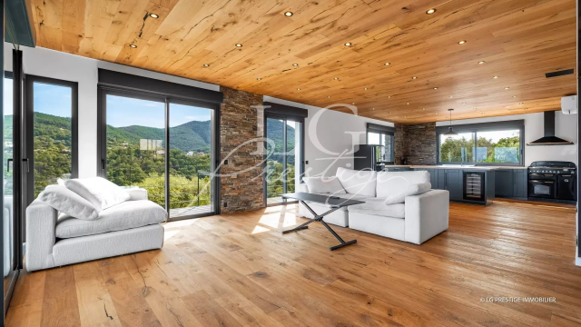 Villa contemporaine avec vue mer et dépendance Nichée dans un quartier résidentiel prisé, cette villa contemporaine de 185 m², entièrement rénovée, dévoile une vue spectaculaire sur la Méditerranée, l’Estérel et son massif. Orientée plein sud, elle baigne de lumière et offre une fluidité parfaite entre intérieur et extérieur : vaste séjour avec cuisine design ouverte sur terrasse panoramique, balcon face mer, et second espace lounge côté Estérel. Le niveau jardin accueille deux chambres élégantes, une salle d’eau et un appartement indépendant de 45 m² idéal pour invités ou location. Jardin paysager, piscine intime, stationnement pour trois véhicules et climatisation complètent ce bien d’exception.