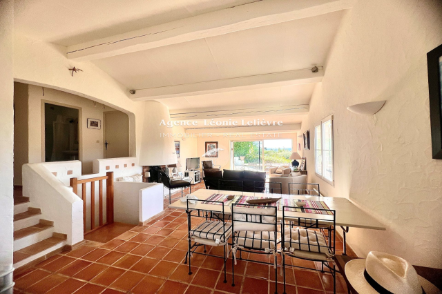 Située dans un quartier résidentiel paisible des Issambres, cette agréable villa, d'une superficie de 110 m², offre une vue sur la mer. Elle se compose en rez-de-chaussée d'un hall d'entrée qui distribue deux chambres, une salle de bains et une toilette. On y trouve également un séjour spacieux d'environ 40 m² doté d'une cheminée et d'une cuisine ouverte bien équipée, le tout ouvrant sur une belle terrasse. À côté de la cuisine se trouve un cellier pratique. Le rez-de-jardin comprend deux autres chambres, une salle d'eau et une seconde toilette. Le logement dispose d'un carport pour garer une voiture à l'abri. En outre, une piscine traditionnelle de 9mx4m, entourée de plages, complète l'ensemble.