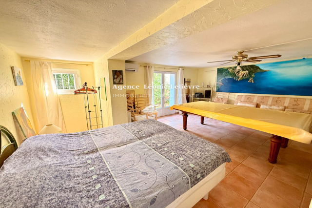 Aux Issambres, sur un terrain d'environ 1250 m², venez découvrir cette charmante maison avec vue mer d'une surface de 163,91 m², elle comprend de plain-pied : Une entrée avec Wc invités, un séjour/salle à manger avec cheminée donnant accès à la terrasse. Une cuisine ouverte, deux chambres ainsi qu'une salle d'eau avec WC. Au rez-de-chaussée, elle comprend une seconde entrée, deux chambres, un WC indépendant, une salle d'eau, un atelier et des pièces de rangements. Une piscine à débordement ainsi qu'un car-port et un pool house viennent compléter ce bien.