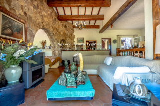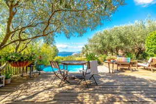 Les Issambres, proche des plages, belle vue mer pour ce Mas provençal sur 2 niveaux d'environ 275 m² sis sur un terrain de 2018 m². À l'étage, la maison principale comprend une entrée avec toilettes invités, un double séjour avec cheminée, une salle à manger, une cuisine indépendante aménagée, un bureau, une buanderie. Le coin nuit offre trois chambres dont une avec sa salle de bains et wc, et deux avec salle d'eau et wc. Un patio avec un petit bassin et coin barbecue mène à une chambre indépendante avec sa salle d'eau et wc. Le Rez de jardin propose un appartement indépendant avec séjour, cuisine ouverte aménagée, deux chambres, salle de bains avec wc, salle d'eau avec wc. Un garage, un car-port pouvant accueillir trois voitures et une cave à vins viennent compléter ce bien. Possibilité de faire une piscine.