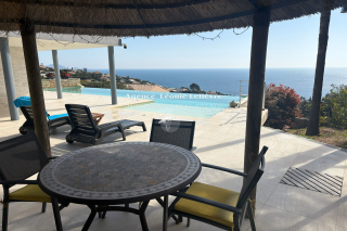 Les Issambres, située dans un quartier résidentiel calme et prisé, cette villa contemporaine offre une vue mer panoramique. De plain-pied, elle dispose de deux chambres, d'une salle de bains, d'un dressing et d'une terrasse. Au rez-de-chaussée, vous trouverez une chambre avec salle de bains et WC, ainsi qu'une suite parentale dotée d'une salle d'eau attenante et d'un bureau (ou chambre) en enfilade. Le séjour, avec de belles hauteurs sous plafond, s'ouvre sur deux terrasses, dont une partiellement couverte, prolongeant ainsi l'espace de vie vers une piscine à débordement. La cuisine ouverte, entièrement équipée, mène à une arrière-cuisine fonctionnelle avec buanderie. Un double garage et une cave viennent parfaire ce bien aux prestations haut de gamme.