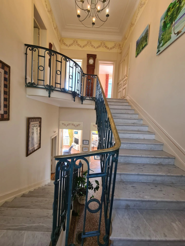 VILLA BELLE EPOQUE A PIEDS DE LA MER A VENDRE A SAINT RAPHAEL RARE – À pied de la mer et des commerces de Saint-Raphaël, dans le recherché quartier de Boulouris, s’élève une demeure de Maître de 1903, véritable témoin du passé élégant et balnéaire de la ville. Implantée au cœur d’un parc plat de 2 947 m² aux essences centenaires, elle offre un cadre de vie intime et préservé, idéal pour accueillir de belles réunions familiales. Dès l’entrée, le charme opère : escalier magistral, hauts plafonds, sols en terrazzo et parquets d’époque confèrent à la maison une atmosphère empreinte d’histoire et d’authenticité. La double réception, ouverte sur la terrasse et le jardin, invite à partager des moments chaleureux en famille ou entre amis. Une cuisine conviviale avec espace repas et un bureau complètent le rez-de-chaussée. À l’étage, six chambres, dont certaines avec un aperçu mer, accueillent famille et invités, desservies par quatre pièces d’eau. En niveau intermédiaire, la maison offre également des pièces supplémentaires, parfaites pour imaginer espace invités, jeux, rangements ou toute autre configuration selon les besoins. Le parc, véritable écrin de verdure, accueille une piscine ainsi qu’un forage, participant au charme et à la fonctionnalité de cette propriété. Une villa de caractère, chaleureuse, faite pour rassembler et transmettre, où chaque détail raconte la douceur de vivre de Saint-Raphaël d’autrefois.