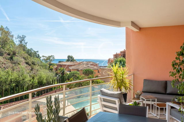 Appartement luxe vue mer et plage à pied Idéalement situé à moins de 100 mètres de la mer, des plages, du port et des restaurants, ce magnifique appartement 2 pièces entièrement climatisé se trouve au sein d’une résidence de standing, sécurisée, avec gardien et piscine.
