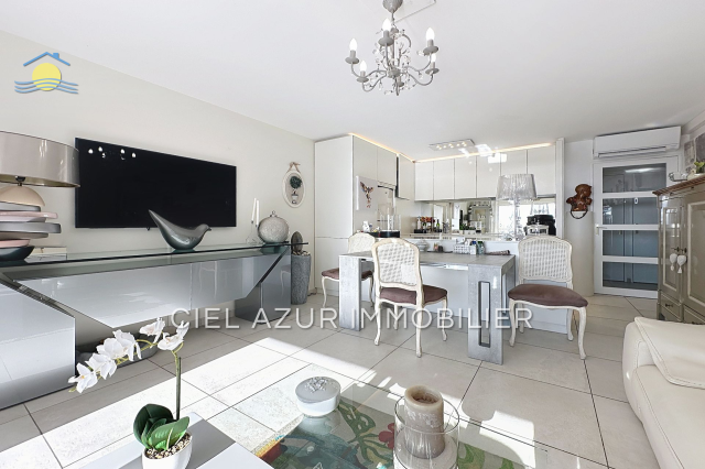 Charmant appartement de type 3 pièces, dans un quartier résidentiel prestigieux du bord de mer à Golfe-Juan, bénéficie d'une vue imprenable sur la mer. Avec une surface totale de 60m², il se compose d'un séjour de 27m² s'ouvrant sur une terrasse de 11m² où vous pouvez profiter du soleil avec une exposition plein sud. Vous découvrirez une cuisine américaine équipée, 2 chambres et 1 salle de douche, un toilette indépendant. L'ensemble est en bon état. Installé au 3ème étage d'un immeuble de standing datant de 1991, l'appartement est accessible par ascenseur. Pour votre tranquillité, la résidence est sécurisée avec porte blindée, les stores et volets roulants sont électriques. Coup de cœur assuré pour les amateurs de calme et de panoramas exceptionnels. En prime, une piscine est à la disposition des résidents. Le secteur du Bord de mer de Golfe-Juan est un véritable joyau de la Côte d'Azur. Ce quartier résidentiel offre une ambiance paisible et un paysage pittoresque. Le littoral se compose de magnifiques plages de sable fin, parsemées de bars et restaurants très attractifs. Cet endroit est également célèbre pour sa richesse historique et culturelle, y compris la Villa du Bateau-Lavoir où Picasso a séjourné. Profitez d'un coucher de soleil sur le Cap d'Antibes, vue imprenable de la promenade du bord de mer, est un must pour les visiteurs. Ce secteur transpire l'atmosphère glamour typique de la Riviera. EXCLUSIVITE CIEL AZUR IMMOBILIER