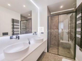 VILLEFRANCHE SUR MER - DANS UNE VILLA - APPARTEMENT 3 PIECES - JARDIN - TERRASSES Vous serez séduit par ce superbe appartement de type 3 pièces entièrement rénové avec de très belles prestations, situé dans une charmante villa au calme absolu. Il offre un vaste séjour lumineux, ouvrant sur une terrasse et un magnifique jardin plat, idéal pour profiter du plein air et recevoir. L’appartement bénéficie également d’une jolie vue mer, apportant une atmosphère paisible et privilégiée. Il se compose de deux belles chambres, d’une cuisine moderne entièrement équipée, d’une salle de bain élégante et de nombreux rangements. Un parking complète le confort de ce bien rare. À seulement quelques minutes à pied des commerces du Col de Villefranche, vous apprécierez son emplacement recherché, alliant tranquillité et proximité des commodités. Un bien coup de cœur à découvrir sans tarder. Honoraire d'agence à la charge du vendeur