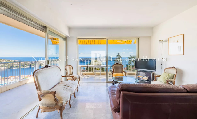 A vendre , Villefranche sur Mer, 3 pièces, vue mer panoramique, 78 m², 1.200.000 euros Exclusivité. À vendre, ce très bel appartement de 3 pièces d’angle de 78 m², situé dans une résidence de standing recherchée, proche du Col de Villefranche-sur-Mer. Cette résidence, sécurisée et parfaitement entretenue, dispose d’une piscine, d’un gardien et de beaux espaces verts. À proximité des commerces, des transports et à quelques minutes seulement des plages et du centre de Villefranche-sur-Mer, cet appartement constitue une opportunité exceptionnelle. L’appartement bénéficie d’une superbe terrasse d’environ 37 m², offrant une vue panoramique exceptionnelle sur la rade de Villefranche-sur-Mer et la péninsule de Saint-Jean-Cap-Ferrat. Sa double exposition assure une luminosité optimale tout au long de la journée. Il se compose d’un séjour ouvrant directement sur la terrasse, d’une cuisine indépendante, de deux chambres, dont une avec salle de douche, d’une salle de bains, de toilettes indépendantes et de nombreux rangements. Le bien nécessite d’être mis au goût du jour, offrant ainsi un beau potentiel de modernisation selon vos envies. Un grand garage ainsi qu’une cave saine complètent ce bien rare sur le secteur. Idéal résidence principale, secondaire ou investissement. À visiter sans tarder Les honoraires sont à la charge du vendeur
