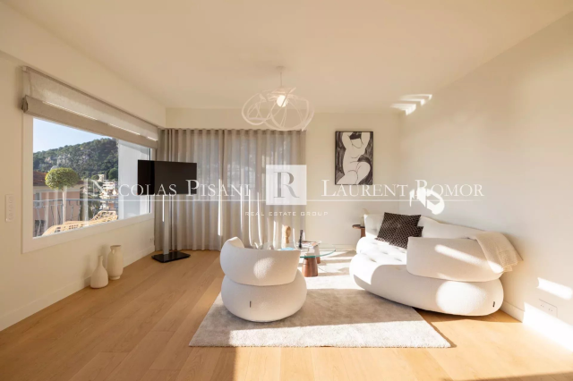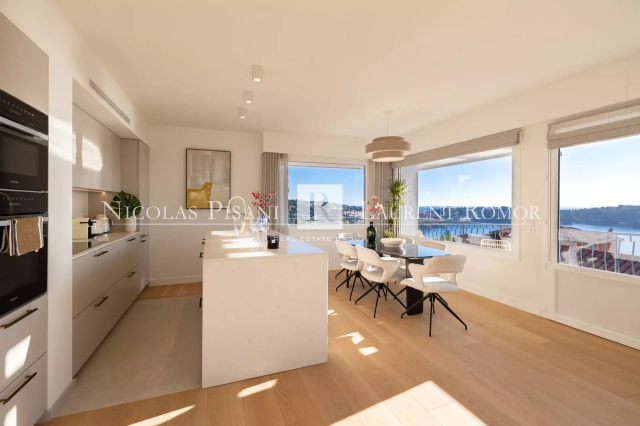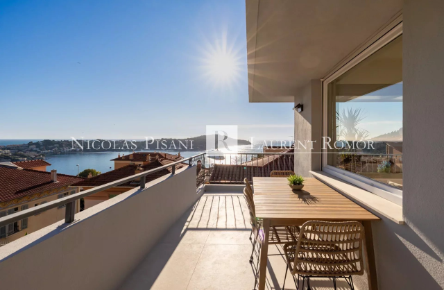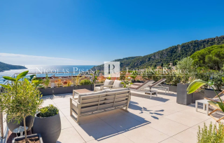 VILLEFRANCHE SUR MER - MAGNIFIQUE APPARTEMENT VUE MER - DERNIER ETAGE-TOIT TERRASSE Récemment rénové, cet appartement au calme offre une belle vue dégagée sur la mer. Il se compose de trois chambres en suite ainsi que d’un vaste séjour avec cuisine ouverte, prolongé par une large terrasse orientée face à la pièce de vie. Le toit-terrasse, entièrement aménagé, constitue un espace extérieur supplémentaire particulièrement appréciable. Un stationnement aisé devant la copropriété. Honoraires d'agence sont à la charge du vendeur.