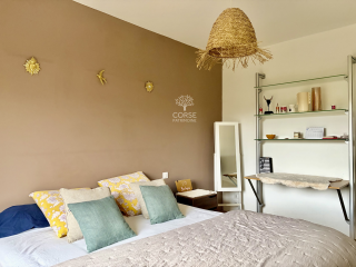 CORSE PATRIMOINE IMMOBILIER a sélectionné au sein d'une résidence calme et prisée, ce superbe appartement avec vue mer, bénéficiant d'une exposition Ouest idéale, offrant une luminosité remarquable et de magnifiques couchers de soleil.
