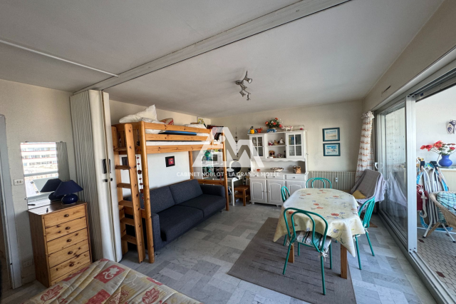 Au centre-ville - Appartement P1 de 30 m ² plus une loggia vitrée de 10 m ² - En étage avec ascenseur - Comprenant : entrée avec placard, salle de bain avec wc, cuisine séparée et aménagée, séjour - A moderniser - Exposé sud ouest - Belle vue mer - Chauffage et eau chaude collectifs par thalasso thermie, volets électriques - Possibilité d'un parking en plus dans une autre copropriété avec droit de préemption