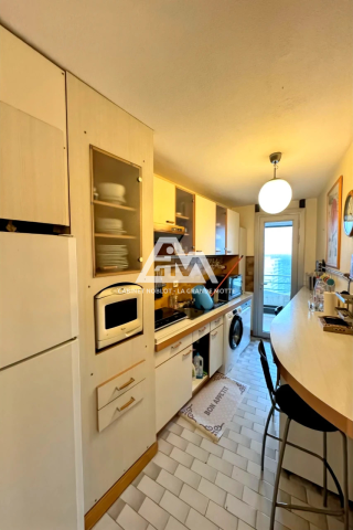 Au centre-ville - Appartement P2/P3 de 89 m ² plus deux terrasses contigus de 12 m ² et une loggia vitrée de 6 m ² - En étage très élevé avec ascenseur - Comprenant : entrée, salon ou 2ème chambre, wc, salle d'eau, coin bureau (peut être aménagés en suite parentale), séjour, coin bureau, chambre avec placard, salle de bain, wc, cuisine aménagée - Bon état - Magnifique vue mer et port - Climatisation, double vitrage, volets et stores électriques - Deux caves et deux parkings privés