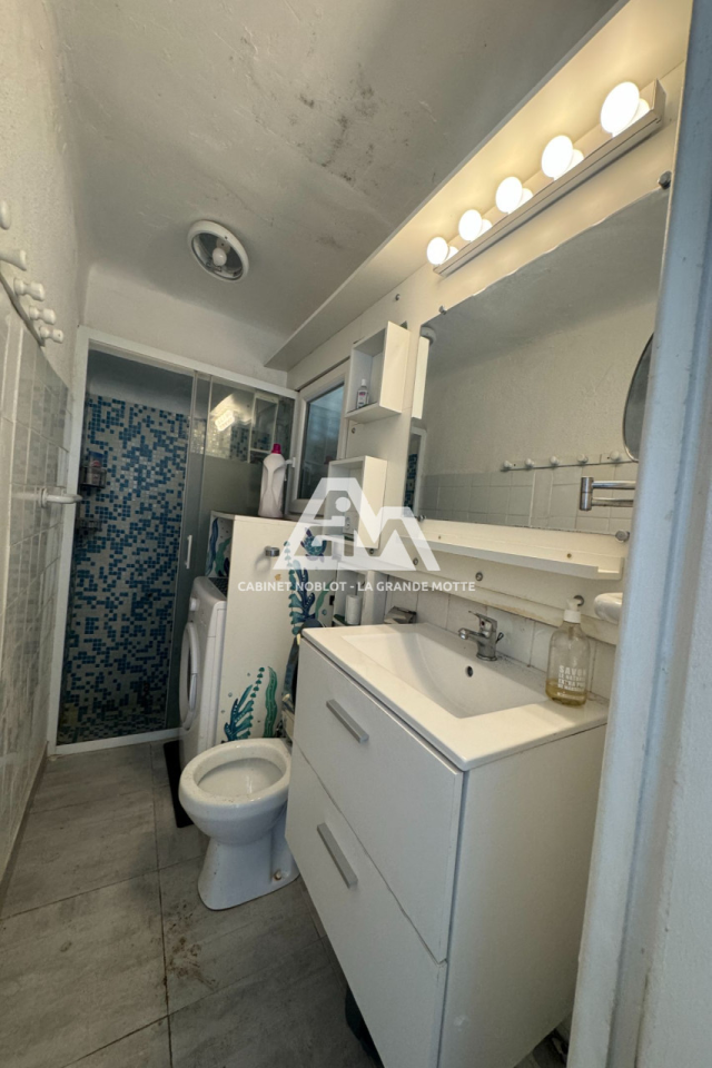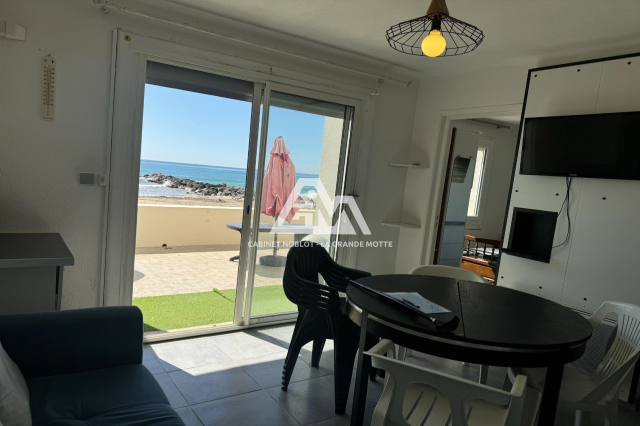 A Palavas les Flots - En 1ère ligne - Appartement de type P3 de 41 m ² plus une belle terrasse de 27 m ² jouxtant la plage - En rez-de chaussée - Comprenant : séjour avec cuisine équipée, salle d'eau avec wc, chambre avec placard, chambre - A moderniser - Magnifique vue mer - Parking collectif - "Les informations sur les risques auxquels ce bien est exposé sont disponibles sur www.georisques.gouv.fr"