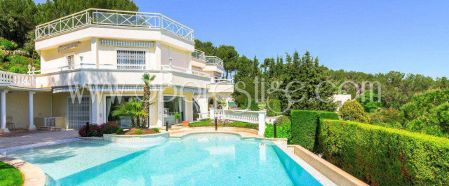 VILLA FLORENTINE VUE MER PANORAMIQUE Cette villa atypique sur trois niveaux offre une vue absolument fantastique et panoramique sur la mer et les montagnes. Située sur les hauteurs de Vallauris, en position dominante et dans un domaine sécurisé. Elle est équipée d'une jolie piscine avec pool house, d'un grand séjour, d'une salle à manger et d'une cuisine familiale. Un coin bureau, 5 chambres au total et 2 suites dont une somptueuse suite de maître. Grand jardin paysagé de 2500 m² derrière la maison ainsi qu'un volumineux sous-sol comprenant un spacieux garage pour 5 voiture ainsi qu'un appartement indépendant et une annexe.