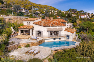 VUE MER PANORAMIQUE Votre agence de Mandelieu-La Napoule est ravie de vous présenter, sur les hauteurs des collines de CAPITOU, en position dominante et sans vis-à-vis, cette villa bénéficie d’une magnifique vue mer panoramique. Entièrement rénovée, elle offre les prestations suivantes : Spacieux séjour, un salon TV, 4 chambres, 3 salles de bains, un bureau/bibliothèque, cuisine entièrement équipée, le tout s’ouvrant sur une grande terrasse avec cuisine d’été, un bel espace piscine, cave à vins, salle de cinéma, et garage.