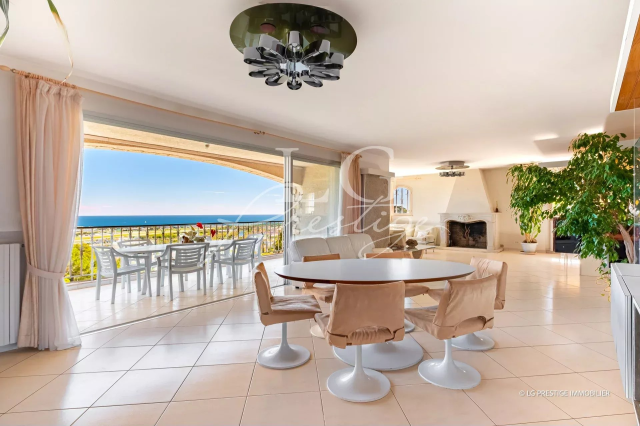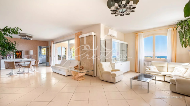 VUE MER PANORAMIQUE Située sur les hauteurs de Mandelieu - A quelques minutes des plages, golfs et des commerces. Quartier résidentiel calme & recherché. Villa de caractère aux beaux volumes de 290 m² offrant une vue dominante exceptionnelle sur la Baie de Cannes jusqu'à Théoule.