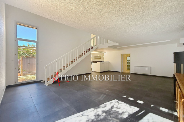 St Laurent du VAr - Montaleigne Superbe maison mitoyenne exposée Sud-Est offrant une légère vue sur la mer. Elle est bâtie sur deux niveaux et bénéficie d'une surface totale de 127 m², avec un terrain attenant de 200 m². Elle offre un séjour cathédrale spacieux de 40 m², une cuisine américaine parfaitement équipée, un bureau, trois chambres à l'étage, une salle de bain, une salle de douche et un WC séparé. Son atout majeur : une terrasse/jardin donnant sur une forêt et un bel aperçu mer, au calme absolu. Une cave et un parking privatif complètent le bien. EXCLUSIVITE ATRIO IMMOBILIER