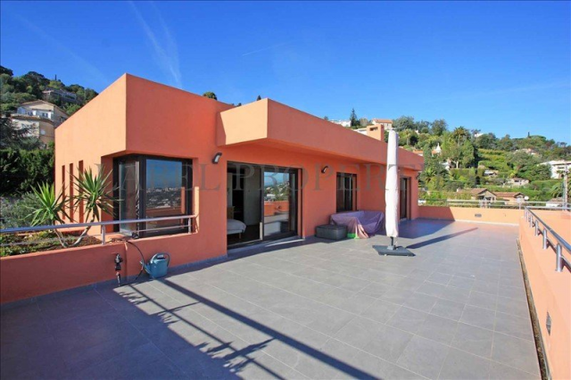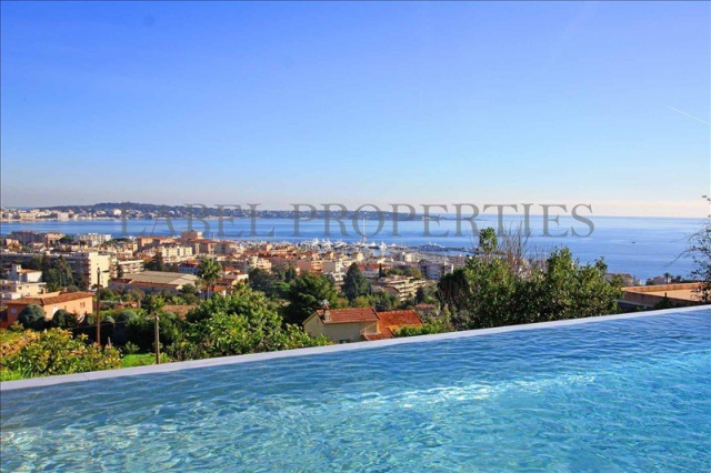 A vendre a Golfe juan : Agreable villa contemporaine avec une vue mer epoustouflante de 200 m2. Elle se compose d'une vaste reception de 75 m2, cuisine equipee, cheminee, 5 chambres, 3 bains, bureau. Sous-sol de 46 m2. Le tout sur un terrain au calme de 1645 m2 complante d'agrumes avec une belle piscine a debordement. Barbecue, grandes terrasses panoramiques. A visiter absolument