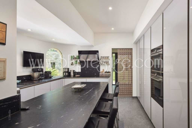 super cannes Vue mer panoramique Magnifique villa contemporaine entièrement rénovée d'environ 280 m² et bénéficiant d'une sublime vue panoramique sur la mer. Elle se compose d'un grand séjour, d'une cuisine indépendante entièrement équipée, de quatre chambres en suite avec leurs salles de bain. La villa est climatisée et est agrémentée d'un jardin d'environ 1000 m² avec piscine, pool house et coin barbecue, jacuzzi et studio indépendant.