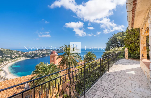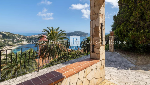 Villa provençale d'environ 250 m² à rénover avec larges terrasses, agréable jardin, vue mer panoramique sur la rade de Villefranche, piscine, double garage et parking.