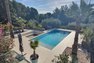 Jardin méditerranéen de 5 000 m2, terrasses multiples, coin pétanque.