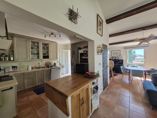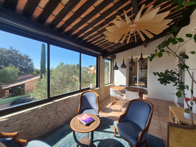 L'agence Immo Forum vous propose en co-exclusivité cette charmante maison idéalement située dans un secteur calme et résidentiel, à seulement 5 minutes à pied de la plage. Sur 135 m² habitables (209 m² au sol), ce bien offre de beaux volumes et une configuration idéale pour une résidence principale, secondaire ou un projet avec rendement locatif. Au rez-de-chaussée : Un studio indépendant entièrement rénové avec salle d'eau et WC, bénéficiant de son jardinet, un grand garage avec espace atelier. A l'étage : Une entrée, un séjour lumineux ouvrant sur une magnifique véranda climatisée avec vue mer, une cuisine aménagée et équipée, deux chambres dont une avec salle d'eau, un WC indépendant et une salle de bains. Au niveau supérieur : Une grande chambre avec placards, ouvrant sur une véranda avec une vue mer imprenable. Sur une parcelle d'environ 487 m², vous profiterez d'un agréable espace extérieur avec terrasse, piscine et local à vélos. Pour plus d'informations, contactez l'agence Immo Forum au 04 42 45 09 09. Fabienne RUBECK (EI) Agent Commercial - Numéro RSAC : 522238559 - Aix-en-Provence.