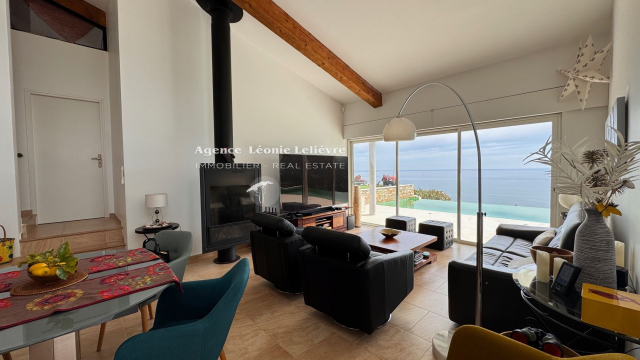 Les Issambres, située dans un quartier résidentiel calme et prisé, cette villa contemporaine offre une vue mer panoramique. De plain-pied, elle dispose de deux chambres, d'une salle de bains, d'un dressing et d'une terrasse. Au rez-de-chaussée, vous trouverez une chambre avec salle de bains et WC, ainsi qu'une suite parentale dotée d'une salle d'eau attenante et d'un bureau (ou chambre) en enfilade. Le séjour, avec de belles hauteurs sous plafond, s'ouvre sur deux terrasses, dont une partiellement couverte, prolongeant ainsi l'espace de vie vers une piscine à débordement. La cuisine ouverte, entièrement équipée, mène à une arrière-cuisine fonctionnelle avec buanderie. Un double garage et une cave viennent parfaire ce bien aux prestations haut de gamme.