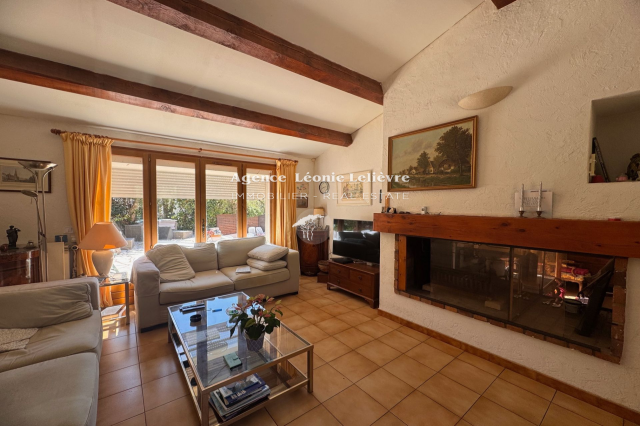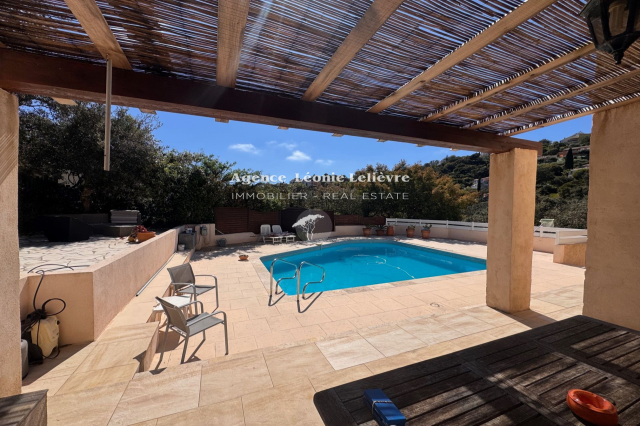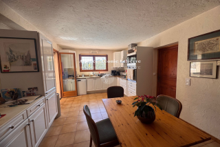 Aux Issambres, à 10 mn à pied des plages et des commerces, dans un secteur calme, sur un terrain de 1645 m², agréable maison de 145 m² comprenant de plain-pied : Une entrée avec WC, un grand espace de vie avec cuisine ouverte équipée et un salon télévision indépendant ouvrent sur une terrasse couverte prolongée par l'espace piscine. Une chambre avec placard donnant sur un solarium, un bureau ou chambre, une petite cuisine et une salle d'eau avec WC. A l'étage, deux chambres dont une avec solarium avec vue mer et une salle de bain complète. Le sous-sol abrite un double garage, une chaufferie et trois caves. La piscine de forme libre avec terrasse vient compléter ce bien.