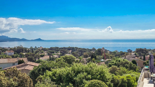 REVIENT A LA VENTE : VILLA 6 PIECES VUE MER PANORAMIQUE A VENDRE A SAINT AYGULF? PROCHE MER ET COMMERCES Saint-Aygulf – Vue mer panoramique pour cette villa de caractère. Dans un environnement résidentiel paisible, à seulement 1 km des plages et 1,4 km du centre, cette propriété séduira les amateurs de vues spectaculaires et d’espaces généreux. Édifiée sur un terrain clos et paysager de 2 270 m², cette villa de construction traditionnelle, rénovée en 2024, offre un espace de vie de 90 m² avec plafond cathédrale, cuisine ouverte entièrement équipée, prolongée par une vaste terrasse face à la mer. Elle dispose de 4 chambres climatisées ouvrant toutes sur l’extérieur, bureau , d’une piscine chauffée, d’une cuisine d’été avec espace repas couvert, d’un double garage et d’un boulodrome. Lignes intemporelles, vue d’exception sur la Méditerranée. Une adresse rare sur la Côte d’Azur, idéale en résidence principale ou secondaire.