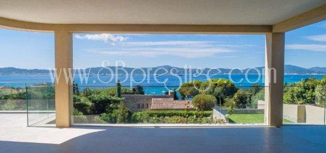 villa vue mer sainte-maxime Villa neuve vue panoramique Mer- VUE SUR LA BAIE DE ST TROPEZ- villa de 300 m² avec terrain de 1900 m² et terrasse 316 m² -piscine 18X7-séjour avec cuisine américaine - 5 chambres suites avec leur salle de bains - hammam avec salle de bains - Wc invité - vestiaires invité -2 garages - caves à vins - cellier - buanderie - matériaux de haute qualité - A ACHETER